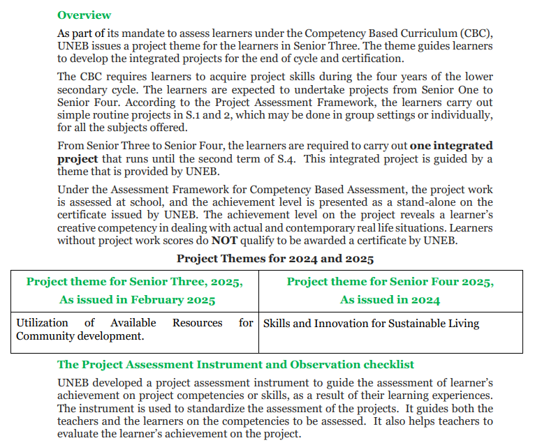 Project theme for Senior Three 2025 focuses on Resource Utilization for Community development